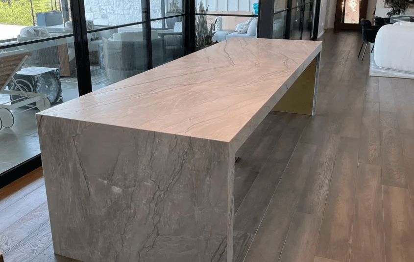 Leathered Quartzite Table Mitered Edge