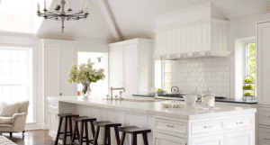 Do you love the luxurious feel of an all white kitchen? There are multiple countertop options that will give this feel, as both granite and marble come in white varieties. Some will have a hint of color that is mostly grey/black, but still remain sleek, clean and durable. Here are a few of our favorite white kitchen looks.